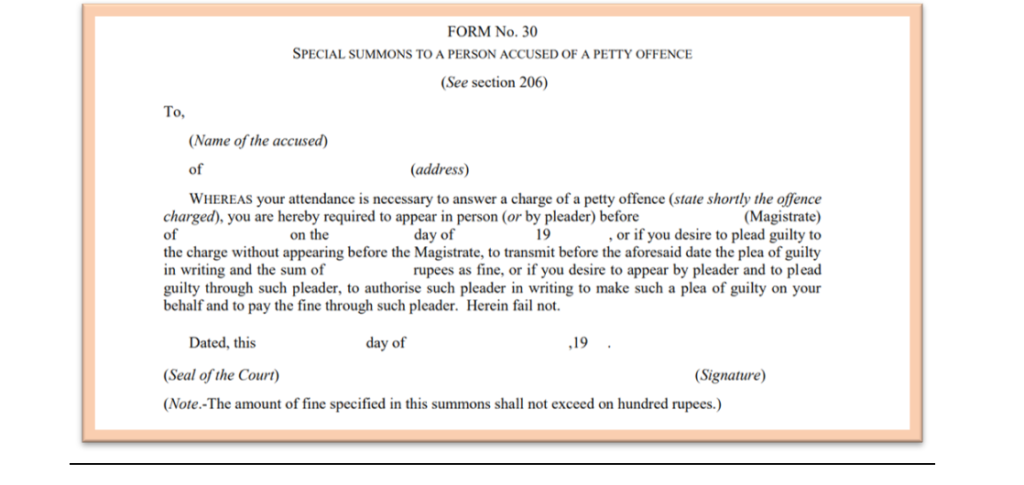 Special Summon : Section 206 Form-30 of Schedule-II of Criminal Procedure Code 1973