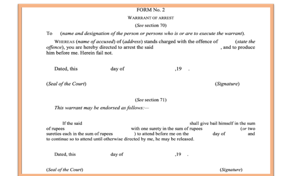 Warrant of arrest shall be in such form as is prescribed in Form No. 2 of the Second Schedule of this Code.