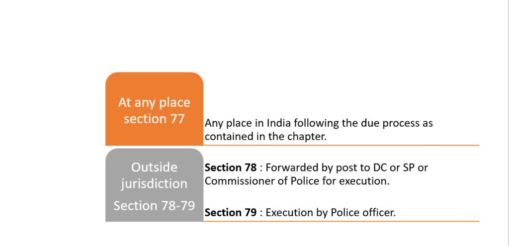 Execution of Warrant : Section 77-79 contains the provisions regarding execution of warrant.